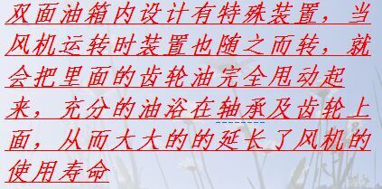 由于大多数机械零件全然浸入润滑油中,因此可以有效性降低风扇的温度并提高风扇主要部件的抗机械疲劳强度。